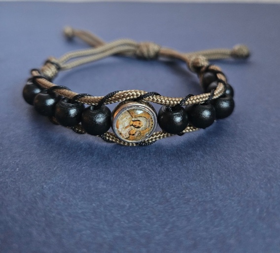 Bransoletka dziesiątka Różańca z wizerunkiem Matki Bożej Gietrzwałdzkiej.