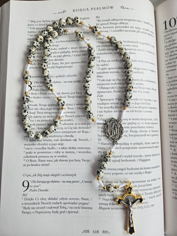 Różaniec jaspis dalmatyński biało- czarny