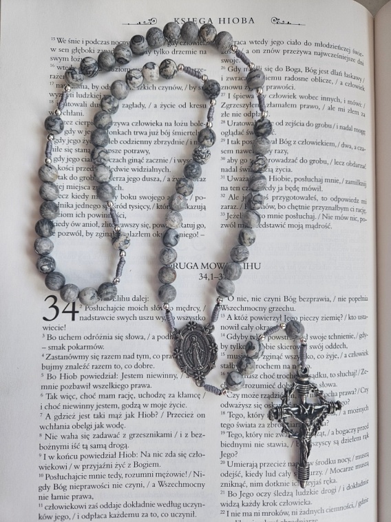 Różaniec jaspis picasso szary